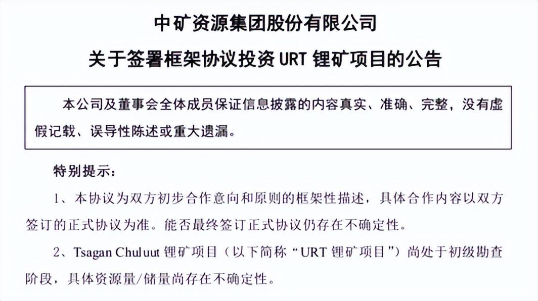 據(jù)介紹,經(jīng)對初級勘查結(jié)果進行核實,截至2023年2月1日,中礦資源此次收購的蒙古國的URT鋰礦項目的資源量估算結(jié)果為控制+推斷類別鋰礦產(chǎn)資源量174.3萬噸礦石量,氧化鋰(Li2O)平均品位約為0.9%(未經(jīng)第三方機構(gòu)評審認定)。