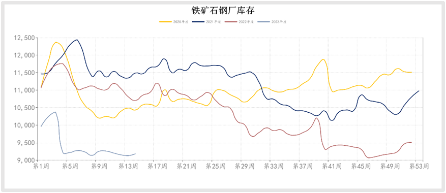 據(jù)mysteel數(shù)據(jù),4月初的一周,其統(tǒng)計(jì)的247家鋼廠高爐產(chǎn)能利用率91.2%,日均鐵水產(chǎn)量245.07萬(wàn)噸,距離近五年的最高點(diǎn),即2020年8月份的253.3萬(wàn)噸,只相差8.23萬(wàn)噸。目前鋼廠鐵礦石總庫(kù)存與庫(kù)銷比維持低位,45港口鐵礦石庫(kù)存去庫(kù)308萬(wàn)噸至1.32億噸。