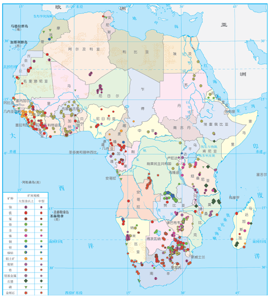 非洲大陸是世界最古老的大陸之一,經歷了復雜的地質構造-巖漿活動-成礦作用演化過程,成礦地質條件優越,礦產資源極為豐富,而且礦產種類齊全、儲量巨大,被稱為世界礦產資源的博物館,是世界著名的礦產資源富集地區之一。
