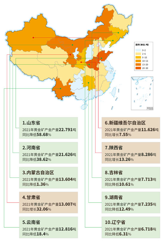 2021年,新疆黃金產量11.626噸,位列全國第五。