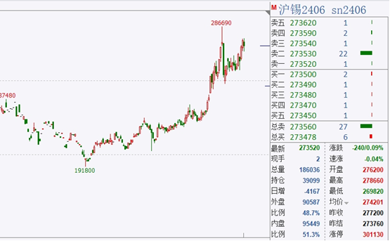 近期,滬錫期貨連續(xù)創(chuàng)下近2年新高,市場小金屬概念逐漸火熱興趣。截至昨日下午收盤,滬錫報273500元/噸,微跌0.09%。
