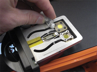 已獲得專(zhuān)利的Terra便攜式X射線衍射儀樣本振動(dòng)艙為用戶免除了這個(gè)步驟。只需15 mg的樣本,振動(dòng)艙的對(duì)流傳熱過(guò)程就可以為儀器的光學(xué)設(shè)備提供晶粒結(jié)構(gòu)的許許多多的衍射方向。這樣就可生成非常理想的X射線衍射圖案,而且基本上不會(huì)出現(xiàn)使用傳統(tǒng)的準(zhǔn)備方式時(shí)會(huì)遇到的擇優(yōu)方向影響的問(wèn)題。得益于獨(dú)特的粉末處理系統(tǒng)、非機(jī)械性角度計(jì),以及少的復(fù)雜性移動(dòng)部件,TERRA便攜式X射線衍射儀特別適用于那些對(duì)儀器的便攜性和使用的方便性要求高的野外應(yīng)用。